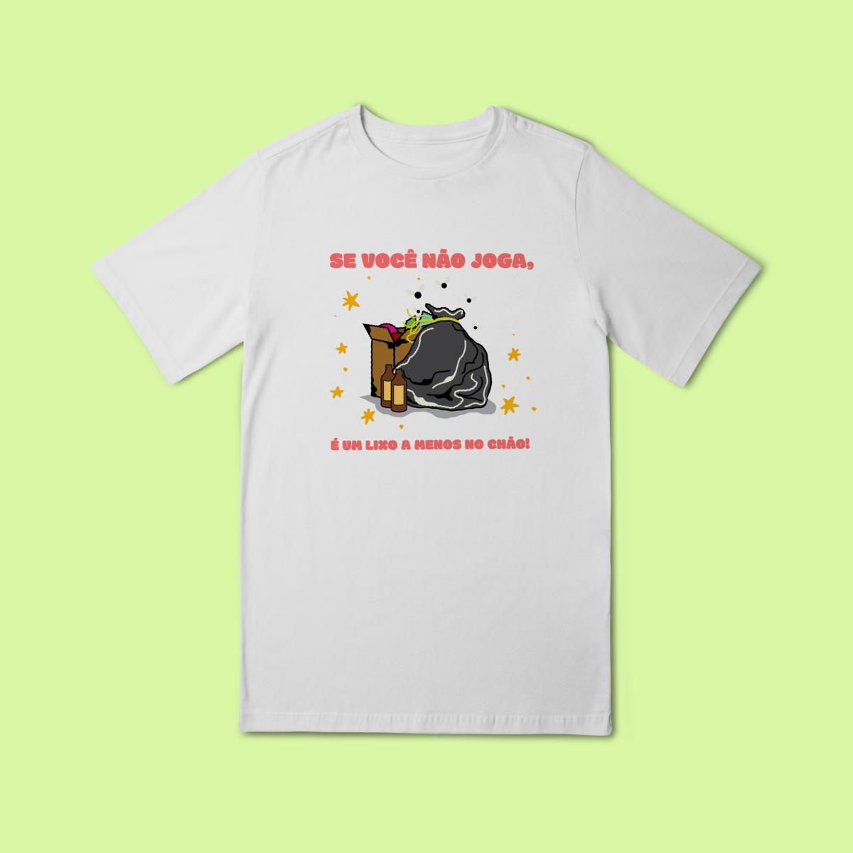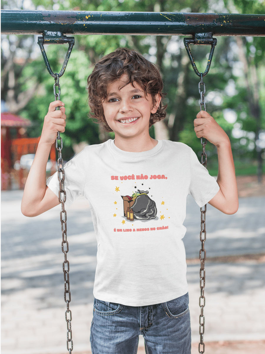 A camiseta infantil "Se você não jogar, é um lixo a menos no chão" foi criada para ensinar cidadania de forma simples, divertida e acessível. Com uma mensagem direta e fácil de entender, ela incentiva crianças a refletirem sobre pequenas atitudes que fazem grande diferença no cuidado com o planeta.