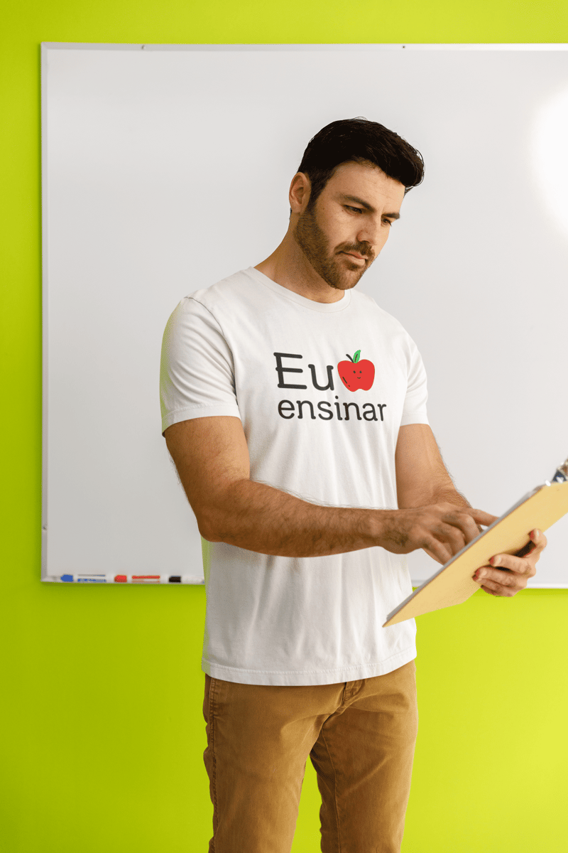 A camiseta masculina “Eu Amo Ensinar” foi criada para quem vive a educação com paixão e propósito. Confeccionada em algodão, com modelagem confortável e estampa de alta qualidade, ela é perfeita para o dia a dia na escola, eventos educacionais ou momentos de lazer.