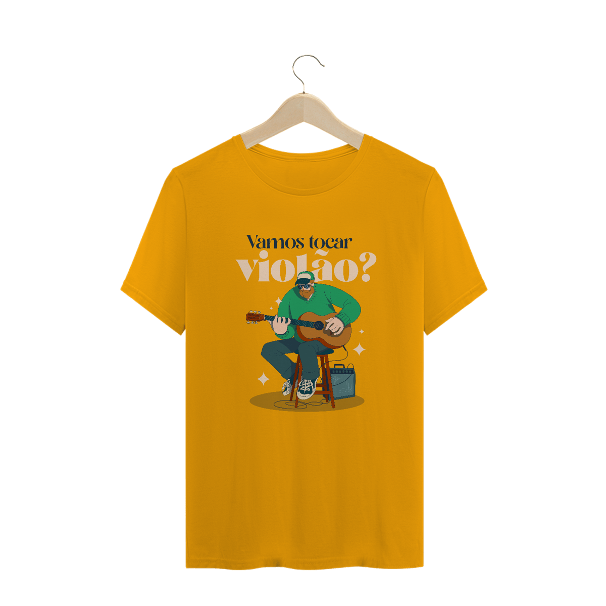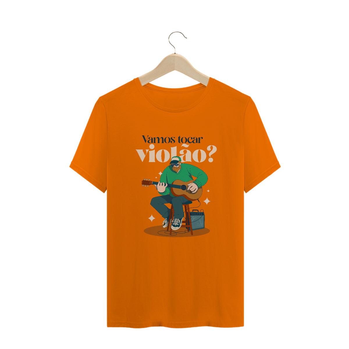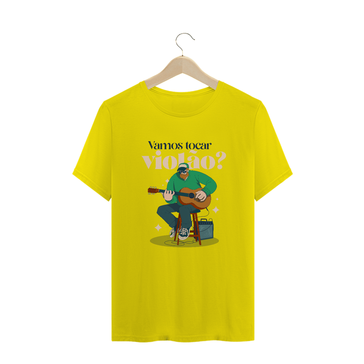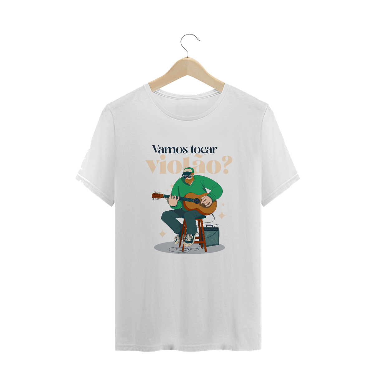 A camiseta masculina "Vamos Tocar Violão?" é perfeita para quem sabe que música é convite, conexão e companhia.
